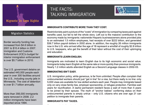 This fact sheet explores some of the common myths and facts about immigration, including its economic impact, immigrants and taxes, and the human rights of immigrants.